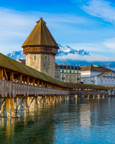 Experience the medieval architecture of Lucerne, walk across the Chapel Bridge with its picturesque water tower, and enjoy stunning views of the surrounding mountains. The city's old town is a treasure trove of history.